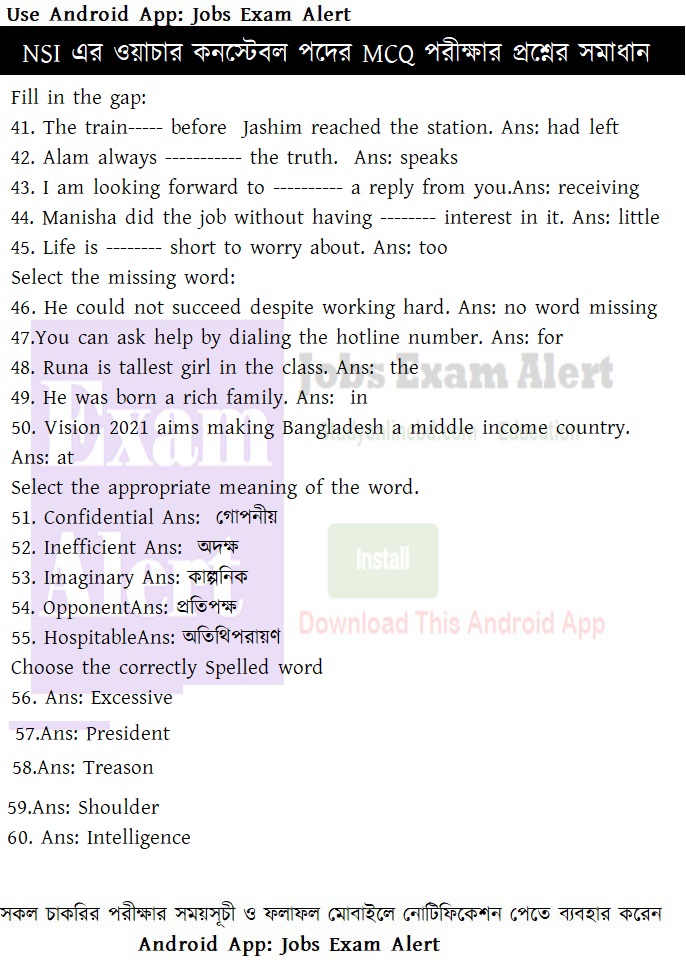 সাধারণ জ্ঞান,ইংরেজি ও বাংলা সমাধান নিচেঃ